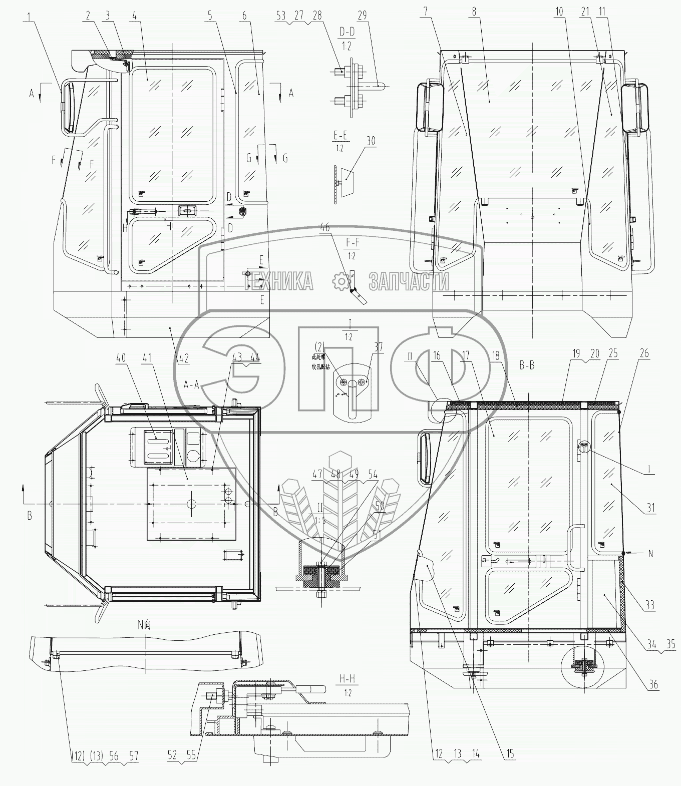 Каталог запасных частей к технике: LiuGong CLG-836. 41E0257 004 CAB AS