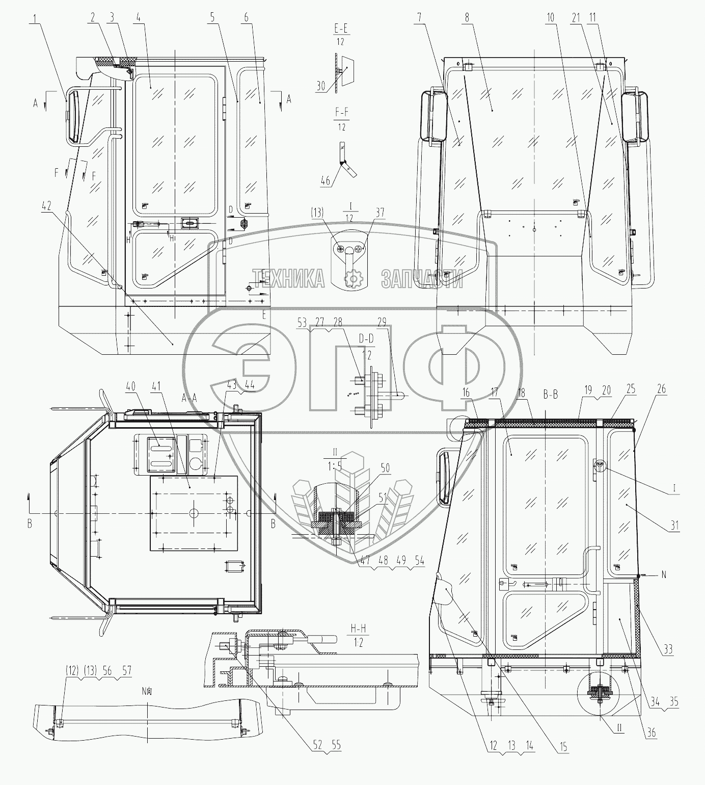 Каталог запасных частей к технике: LiuGong CLG-836. 41M0001 013 CAB AS
