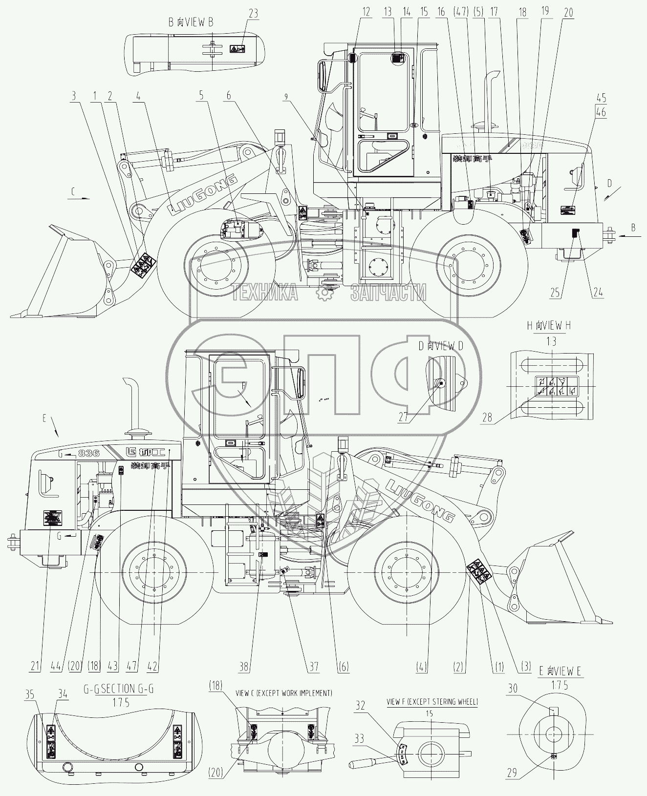 Каталог запасных частей к технике: LiuGong CLG-836. 45E0644 002 DECAL GROUP
