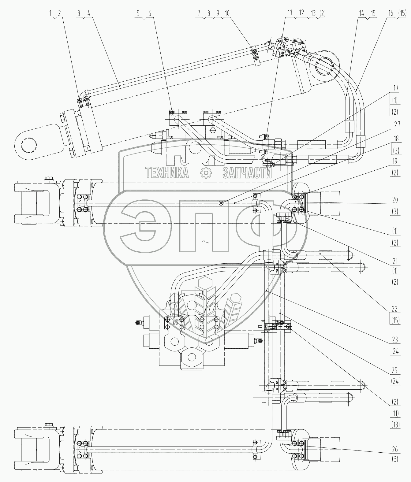 Каталог запасных частей к технике: LiuGong CLG-842. 00C1843 002 BOOM CYLINDER LINES