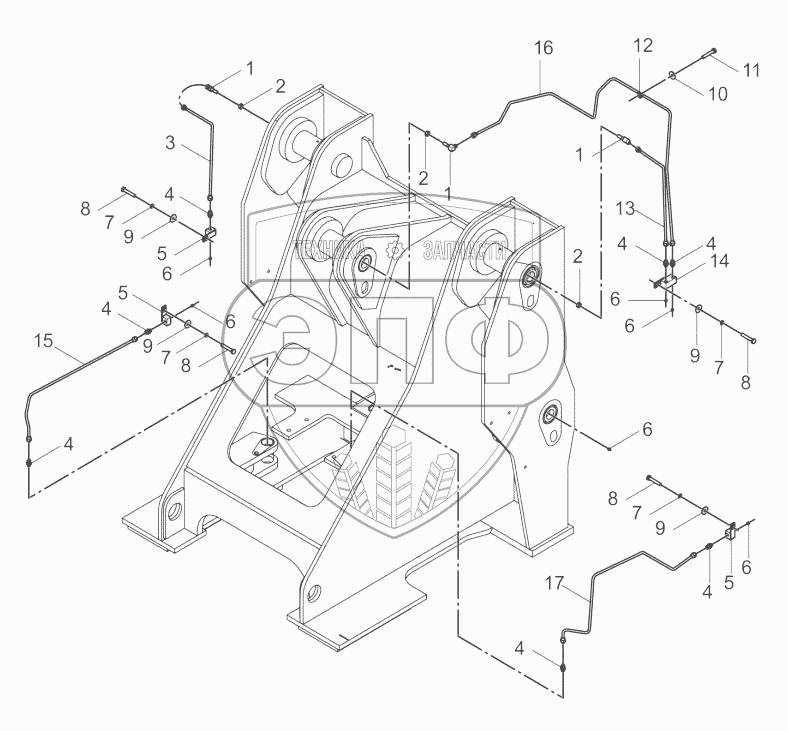 Каталог запасных частей к технике: LiuGong CLG-855N. 00C1916_001_00 LUBRICATION PIPE