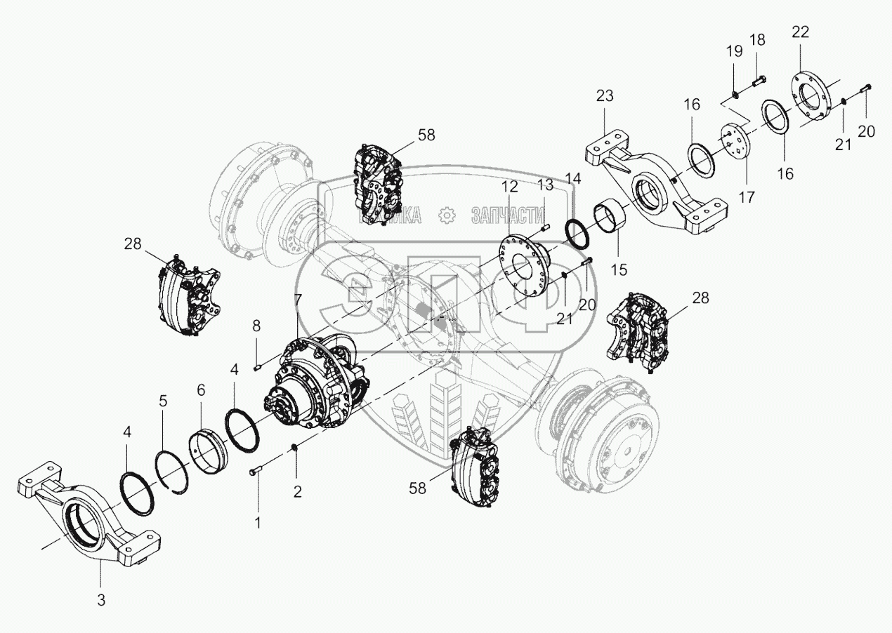 Каталог запасных частей к технике: LiuGong CLG-856H. 01Y0036-000-00 REAR AXLE AS