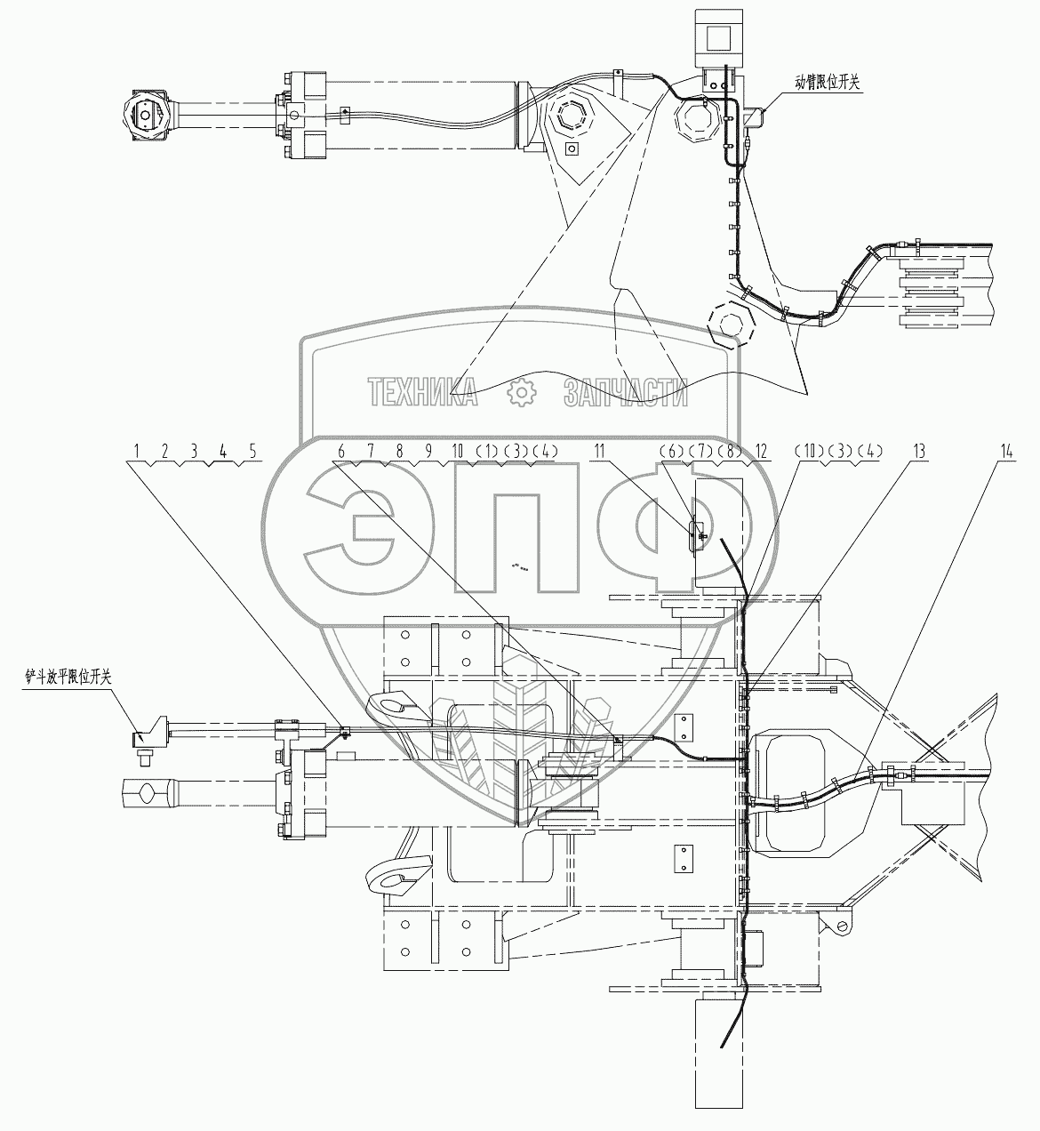 Каталог запасных частей к технике: LiuGong CLG-856I. 46C1738 001 FRONT FRAME WIRING