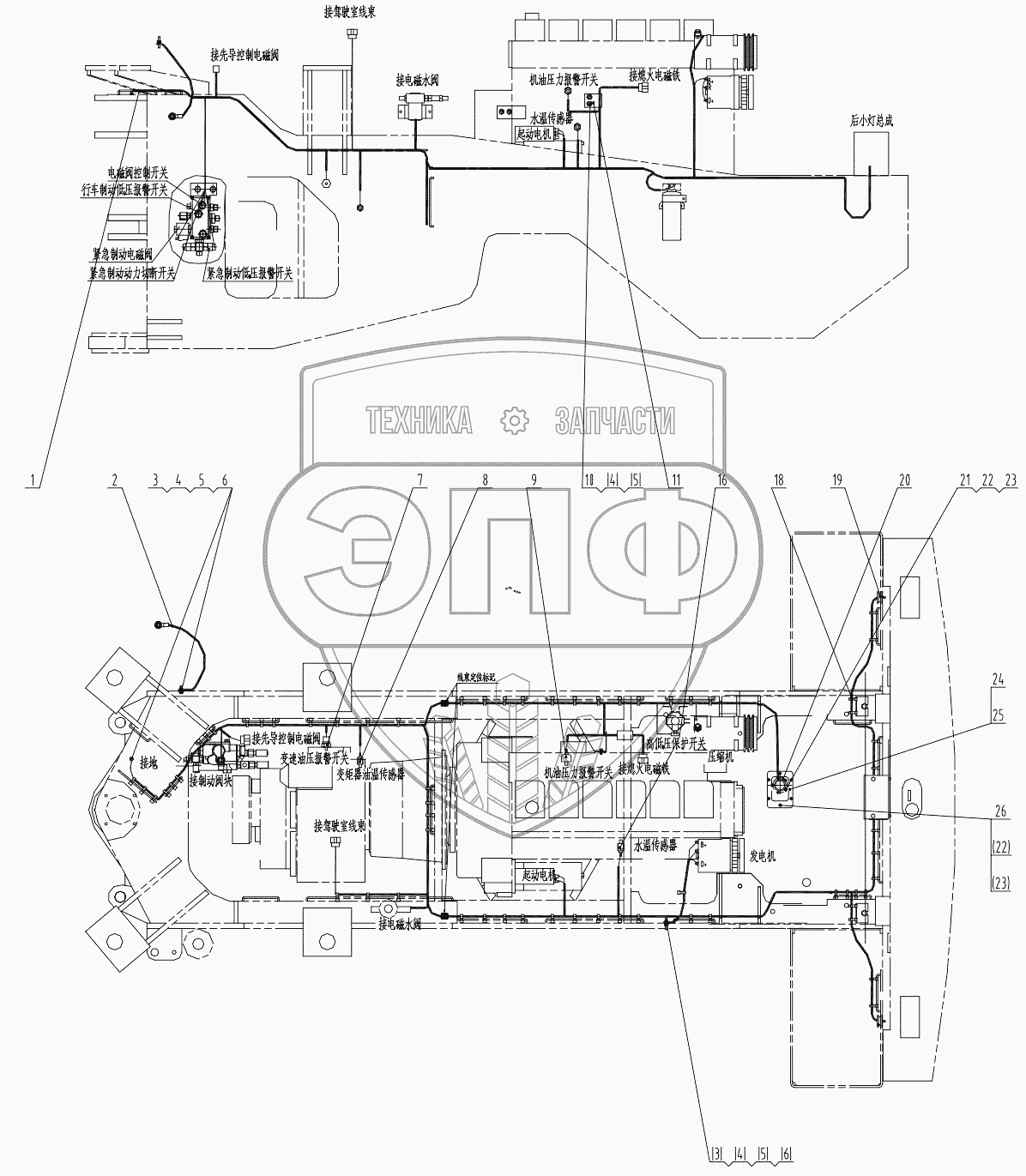 Каталог запасных частей к технике: LiuGong CLG-856I. 46C1744 003 REAR FRAME WIRING