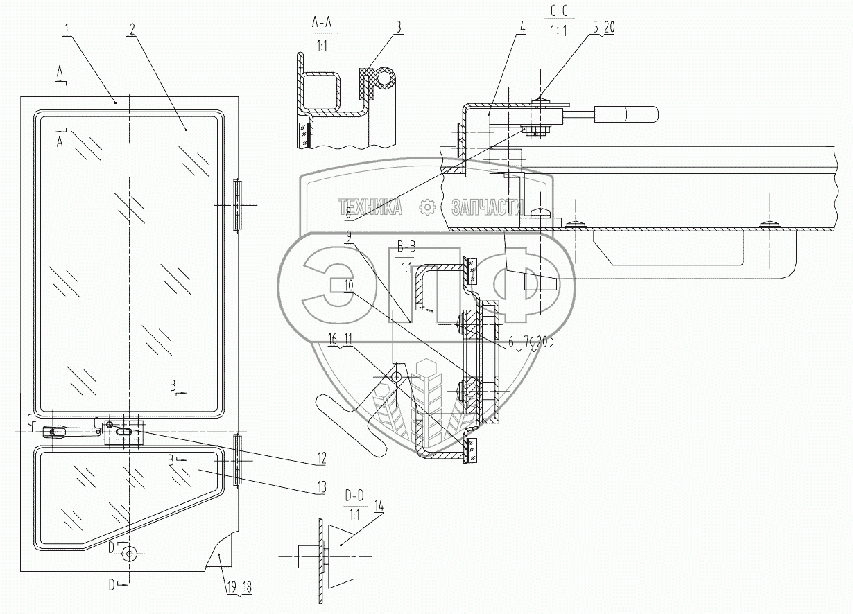 Каталог запасных частей к технике: LiuGong CLG-856I. 47C0543 002 DOOR-LH