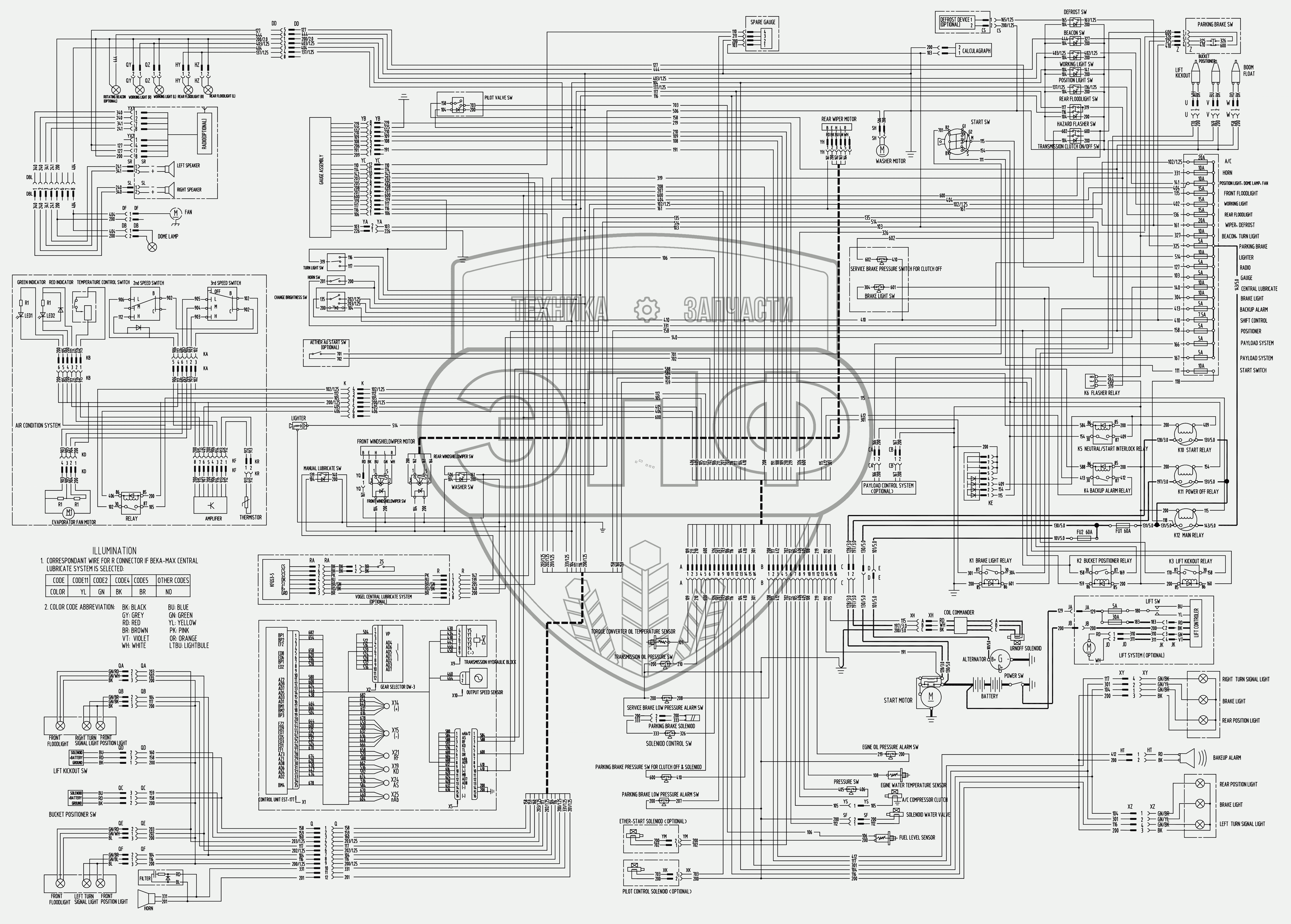 Каталог запасных частей к технике: LiuGong CLG-856I. 50E0055 002 ELECTRICAL SCHEMATIC