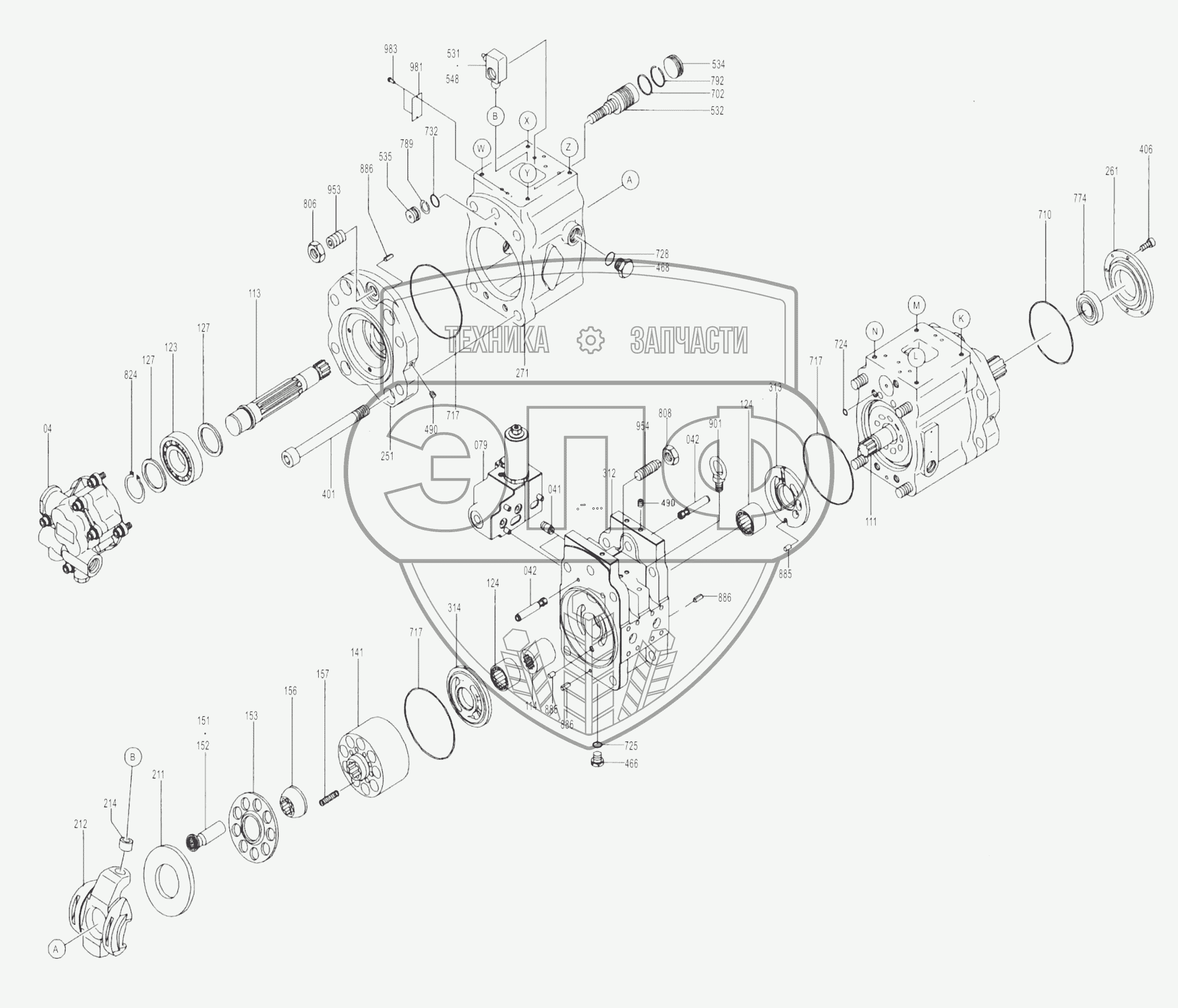 Каталог запасных частей к технике: LiuGong CLG-925D. 11C0591 001 MAIN PUMP AS