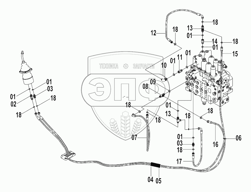 Каталог запасных частей к технике: LiuGong CLG-925D. 12E0201 PILOT HYDRAULIC SYSTEM (E)
