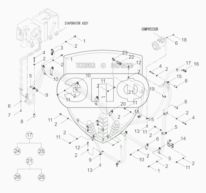 Каталог запасных частей к технике: LiuGong CLG-933E. 23E0359-005-03 AIR CONDITIONING SYSTEM