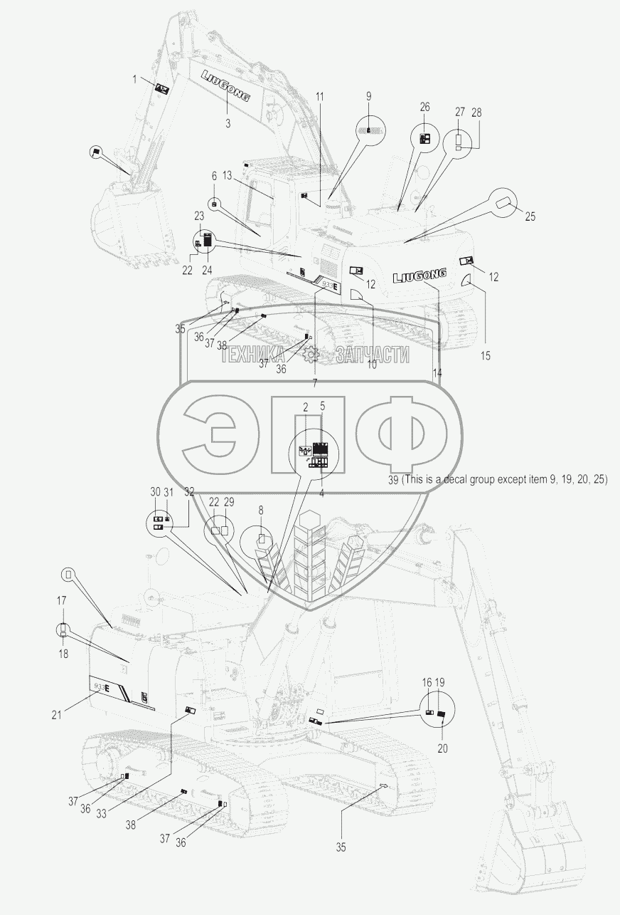 Каталог запасных частей к технике: LiuGong CLG-933E. 48Y0961-000-00 DECAL GROUP