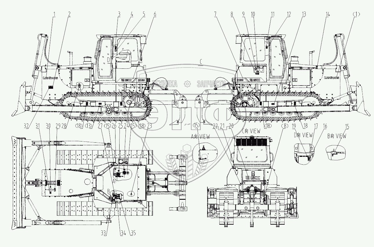 Каталог запасных частей к технике: LiuGong CLG-B160. 45E0965 000 DECAL GROUP