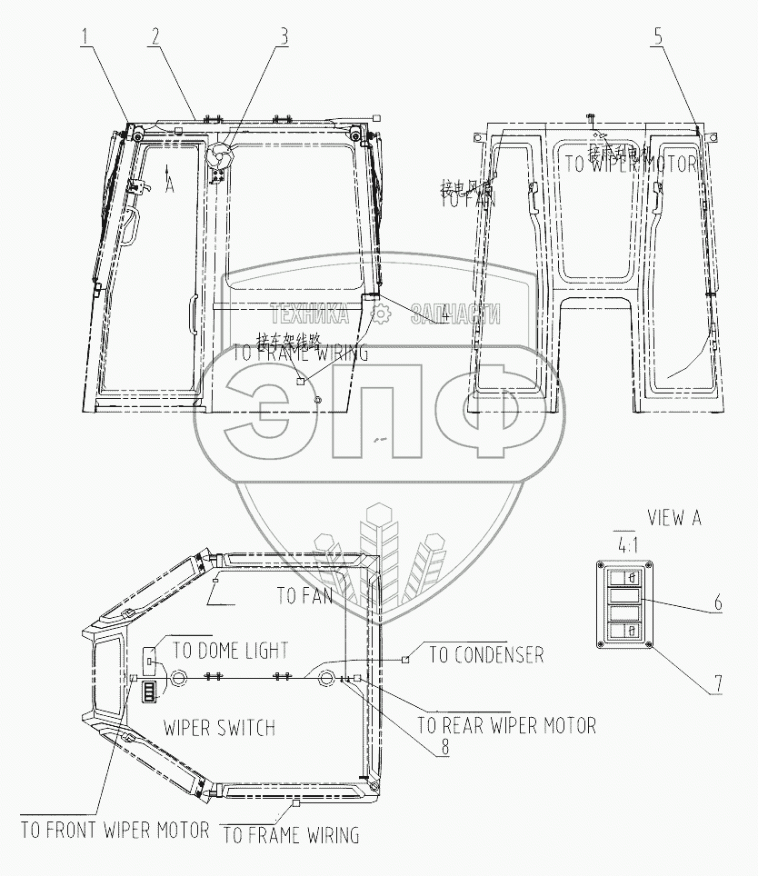 Каталог запасных частей к технике: LiuGong CLG-B160. 46C3427 CAB WIRING
