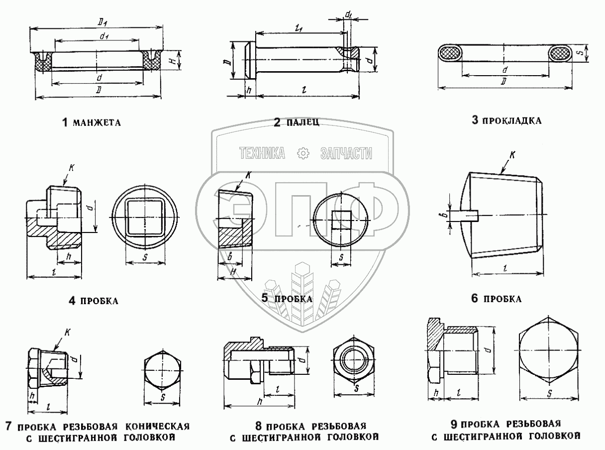 Каталог запасных частей к технике: ЛЗА 4014. Манжеты, пальцы, прокладки, пробки