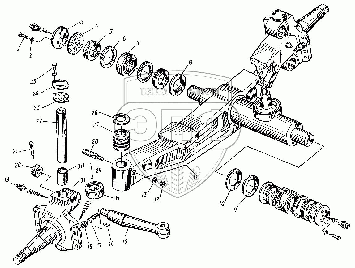 Каталог запасных частей к технике: ЛЗА 4014. Ось задняя и поворотные кулаки