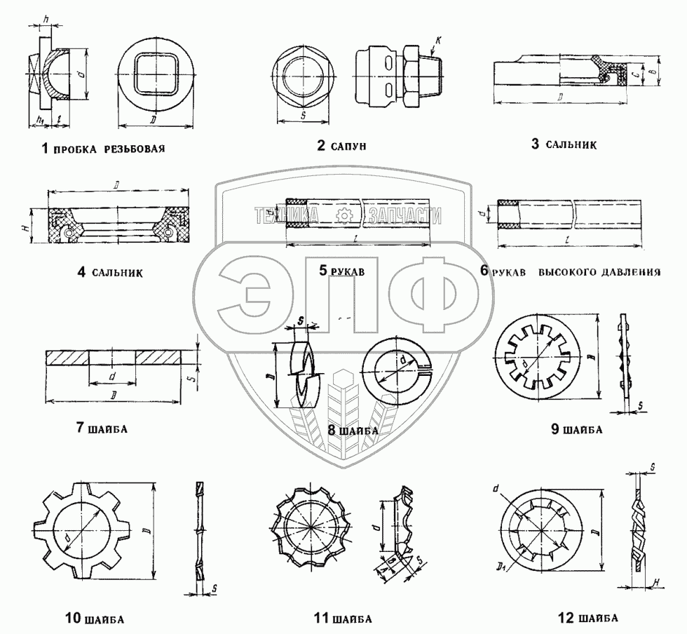 Каталог запасных частей к технике: ЛЗА 4014. Пробки, сапуны, сальники, рукава, шайбы