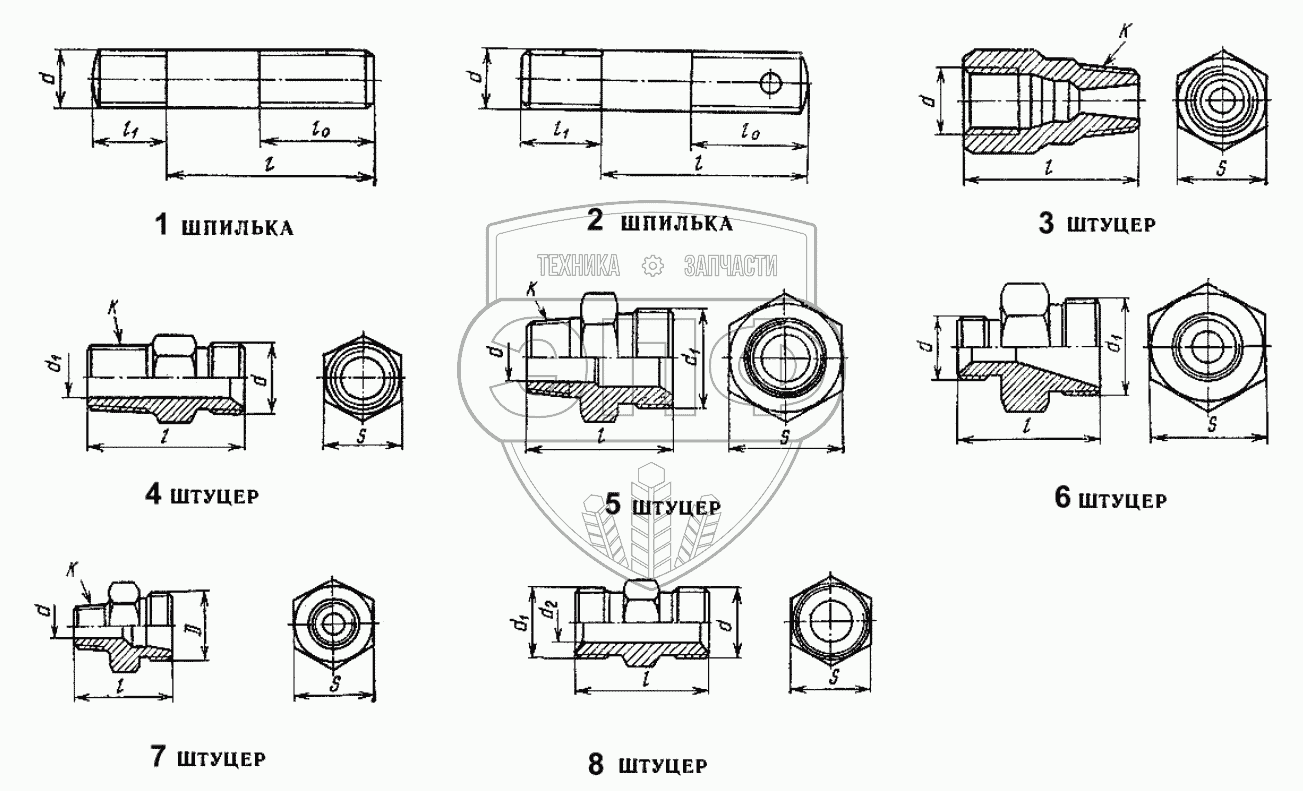 Каталог запасных частей к технике: ЛЗА 4014. Шпильки, штуцера