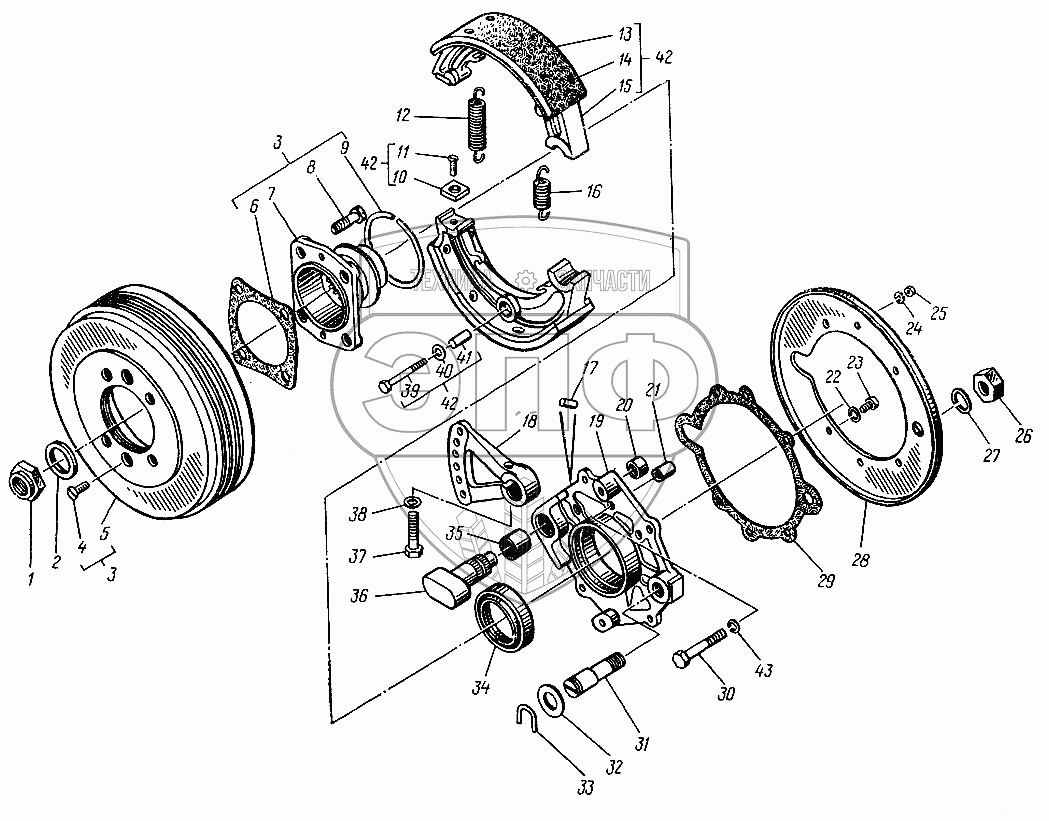 | 3 | 130-3507050 | Барабан стояночного тормоза с фланцем в сборе | Нет на складе | |