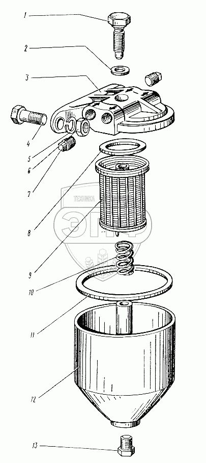 Каталог запасных частей к технике: ЛЗА 4043М. Фильтр-отстойник грубой очистки топлива