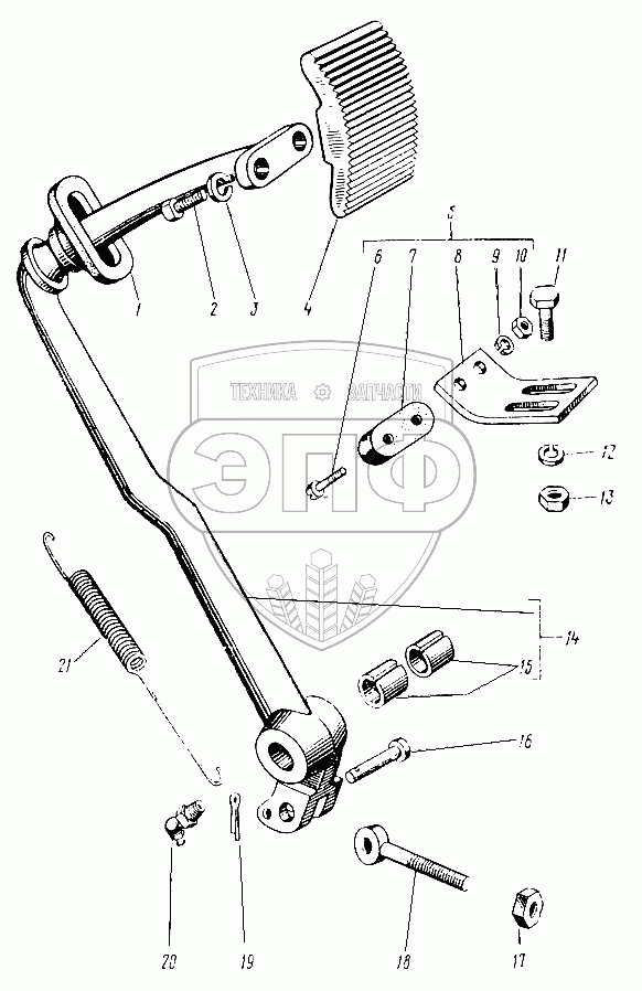 Каталог запасных частей к технике: ЛЗА 4043М. Педаль и привод тормоза