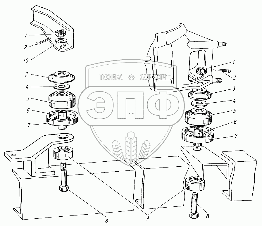 Каталог запасных частей к технике: ЛЗА 4043М. Подвеска двигателя