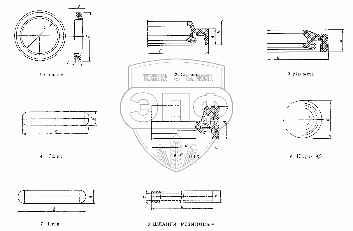 Каталог запасных частей к технике: ЛЗА 4043М. Сальники, манжеты, ролики, шарики, иглы, шланги