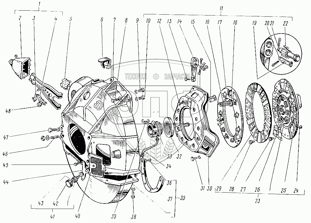 Каталог запасных частей к технике: ЛЗА 4043М. Сцепление