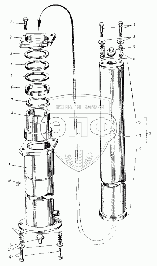 Каталог запасных частей к технике: ЛЗА 4043М. Цилиндр подъема грузоподъемника погрузчика 4043М