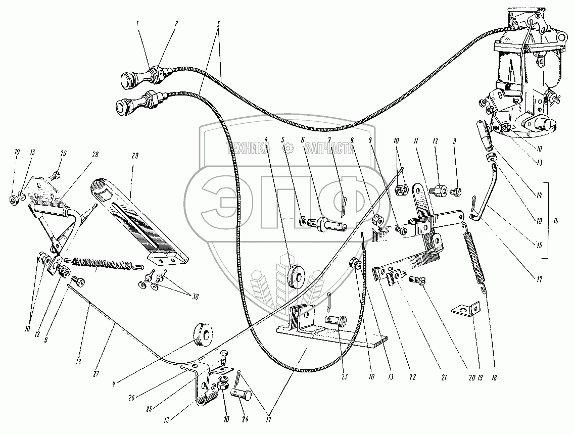 Каталог запасных частей к технике: ЛЗА 4043М. Управление подачей топлива и воздушной заслонкой
