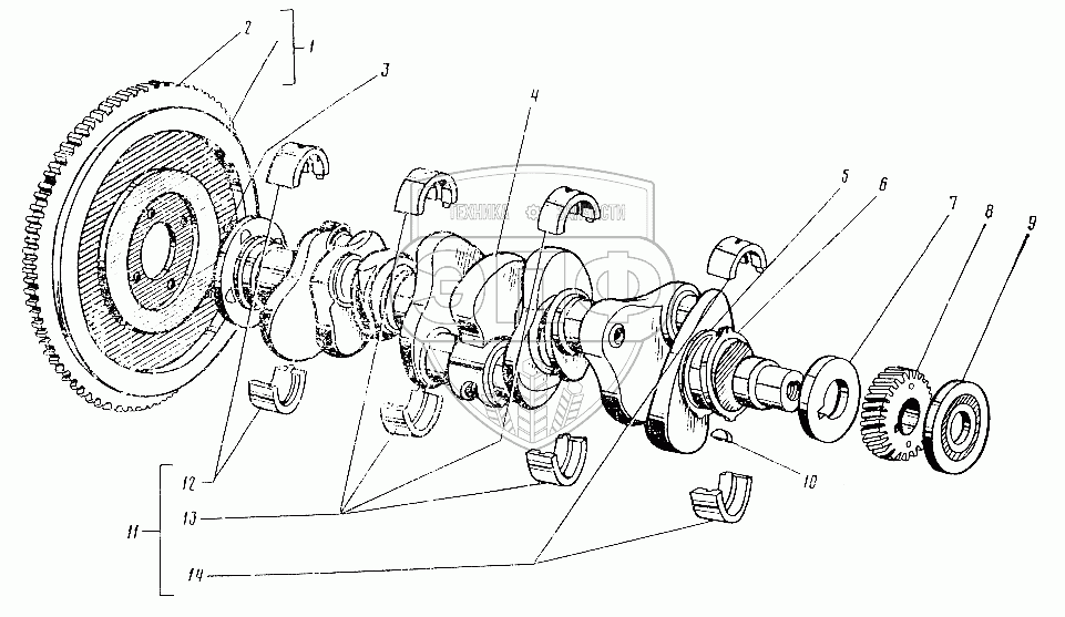 Каталог запасных частей к технике: ЛЗА 4043М. Вал коленчатый и маховик