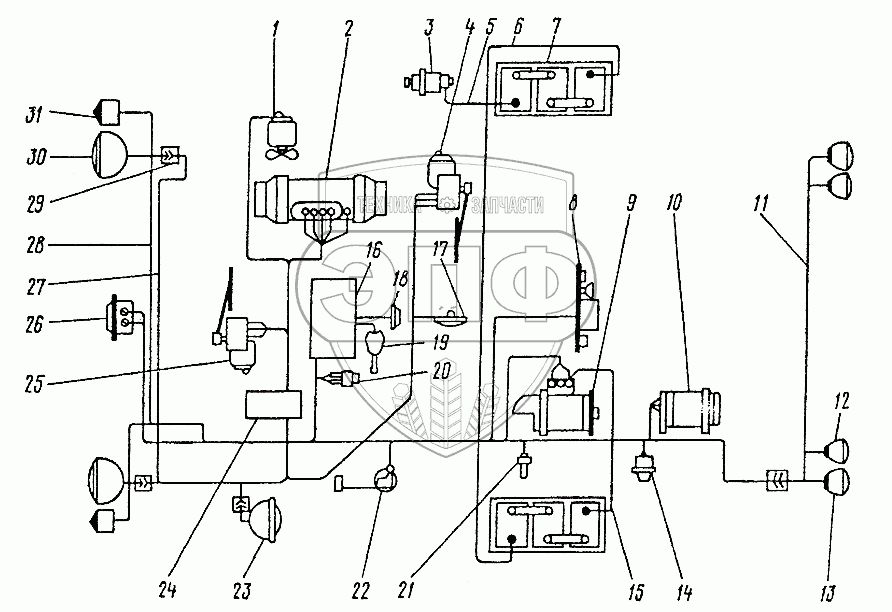 Каталог запасных частей к технике: ЛЗА 40810. Схема электрооборудования 40810-3700