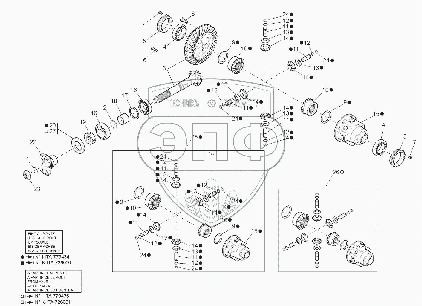 Каталог запасных частей к технике: MANITOU MT-X1235STS3-E3. FRONT AXLE DIFFERENTIAL