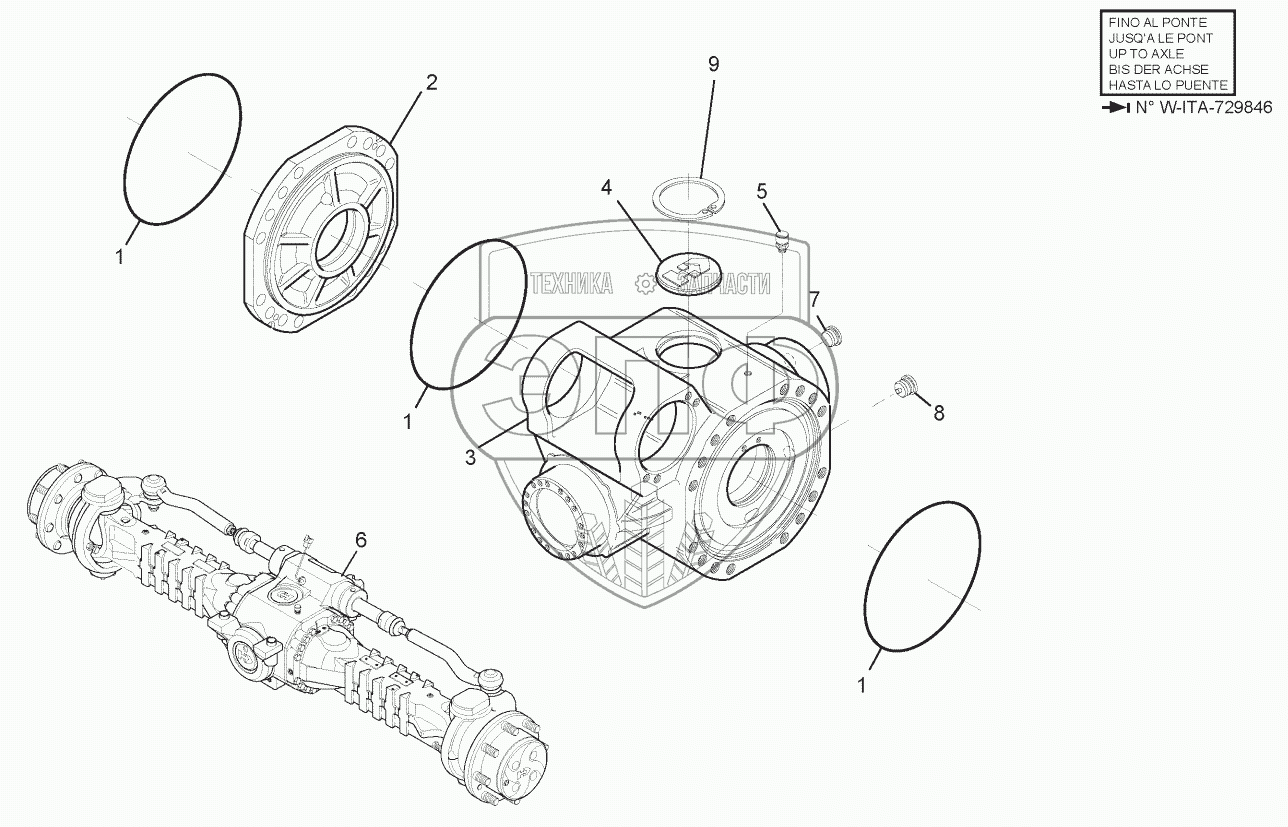 Каталог запасных частей к технике: MANITOU MT-X1440SLTS4-E3. REAR AXLE CASING