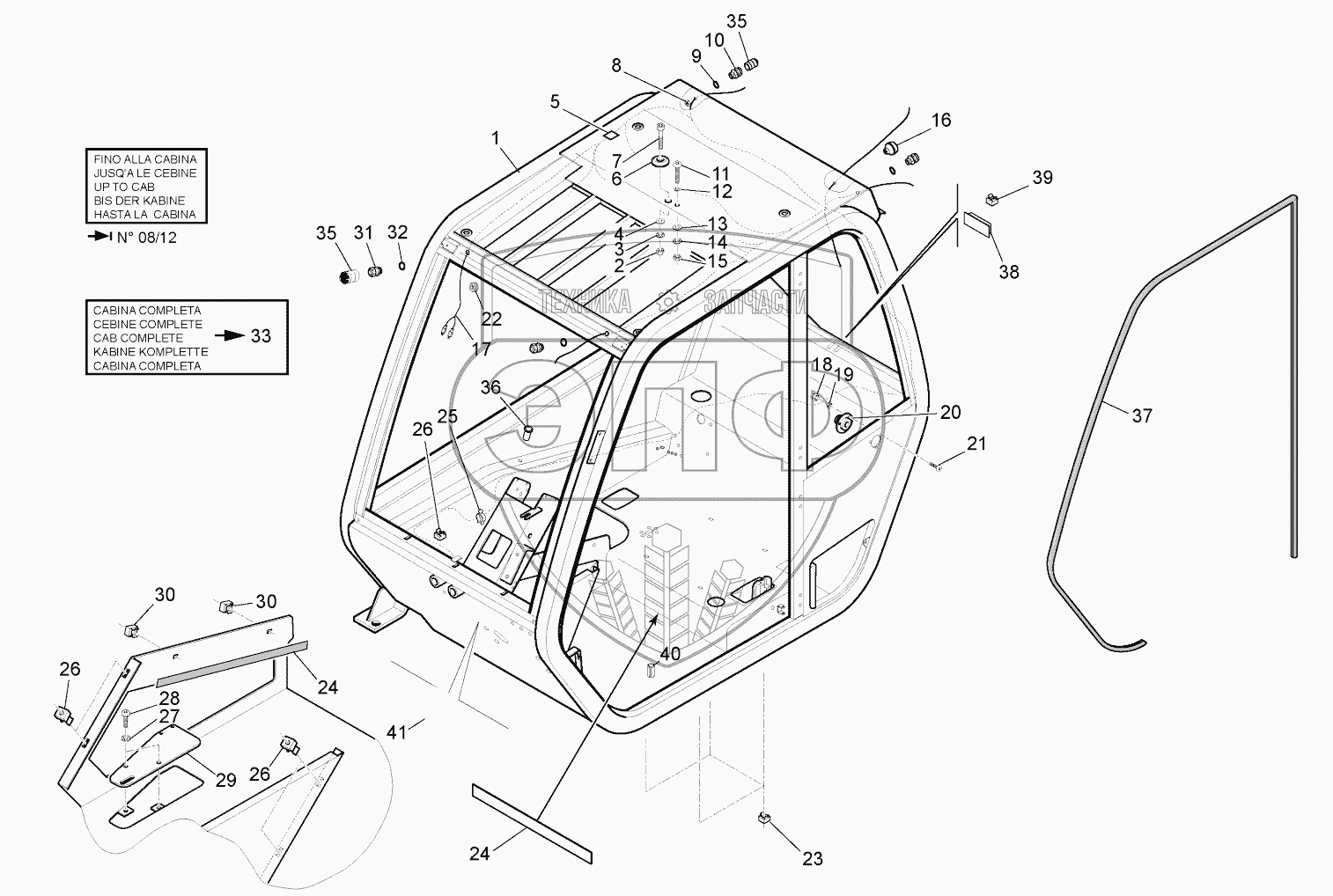 Каталог запасных частей к технике: MANITOU MT-X1740SLTS3-E3. CAB (DETALIS)