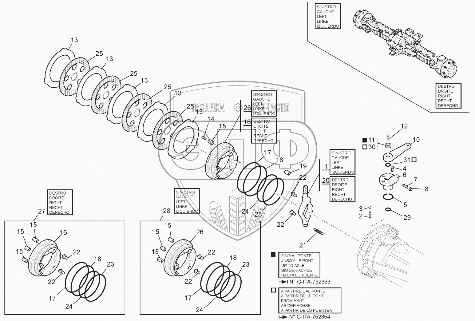 Каталог запасных частей к технике: MANITOU MT-X1740SLTS3-E3. FRONT AXLE HYDRAULIC BRAKE