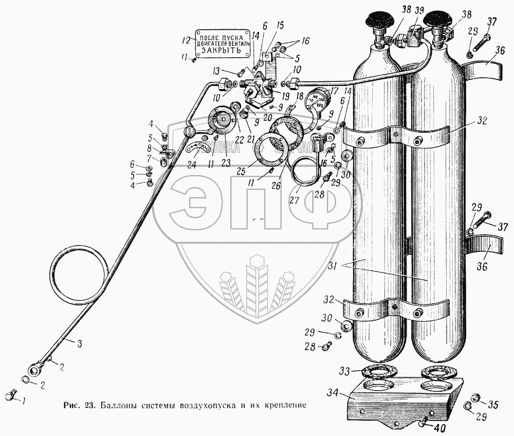 Каталог запасных частей к технике: МАЗ-537. Баллоны системы воздухопуска и их крепление
