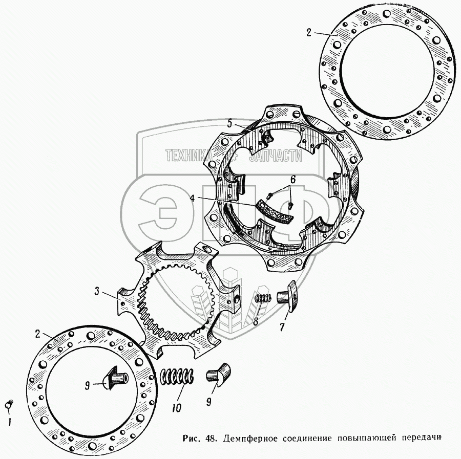 Каталог запасных частей к технике: МАЗ-537. Демпферное соединение повышающей передачи