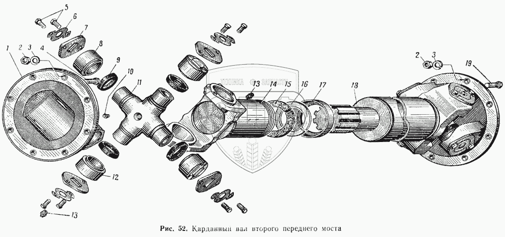 Каталог запасных частей к технике: МАЗ-537. Карданный вал второго переднего моста