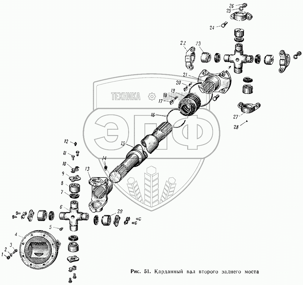 Каталог запасных частей к технике: МАЗ-537. Карданный вал второго заднего моста