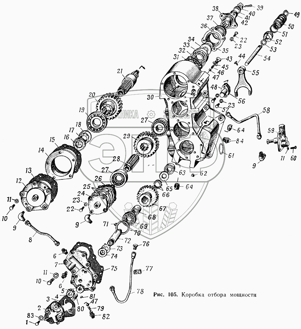 Каталог запасных частей к технике: МАЗ-537. Коробка отбора мощности