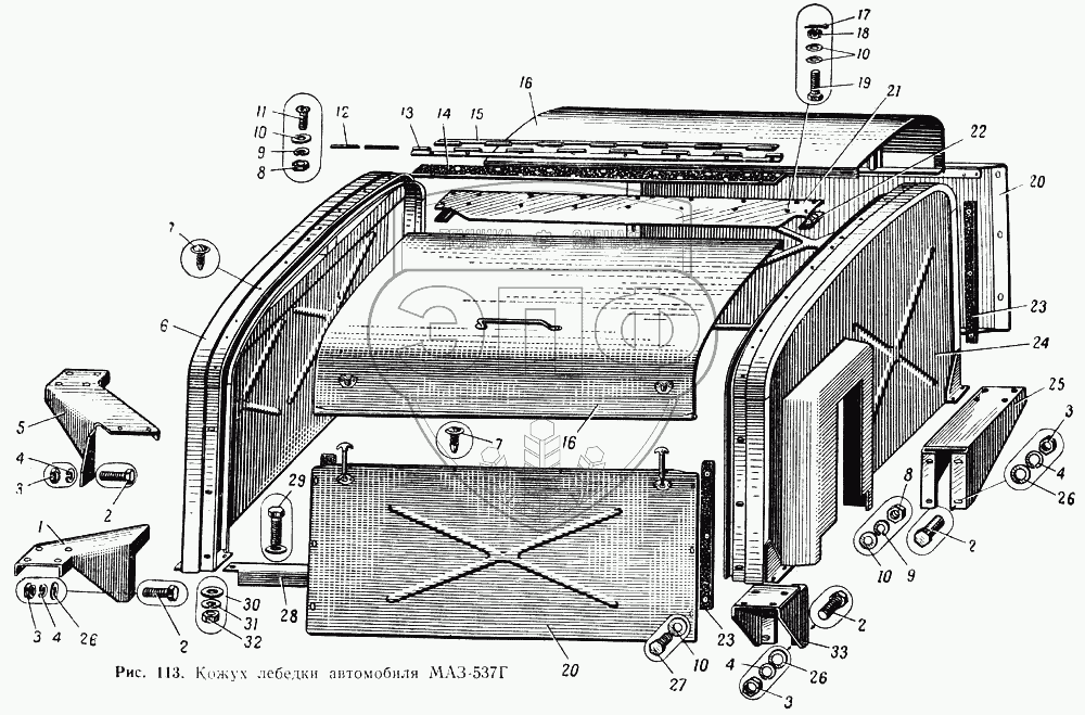 Каталог запасных частей к технике: МАЗ-537. Кожух лебедки автомобиля МАЗ-537Г