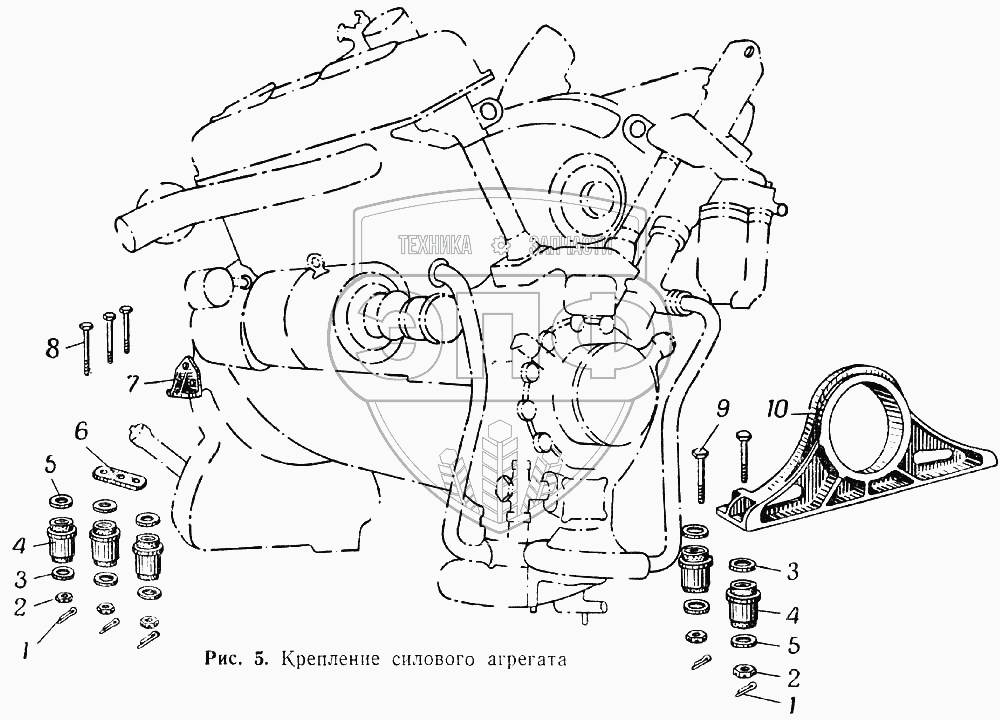 Каталог запасных частей к технике: МАЗ-537. Крепление силового агрегата
