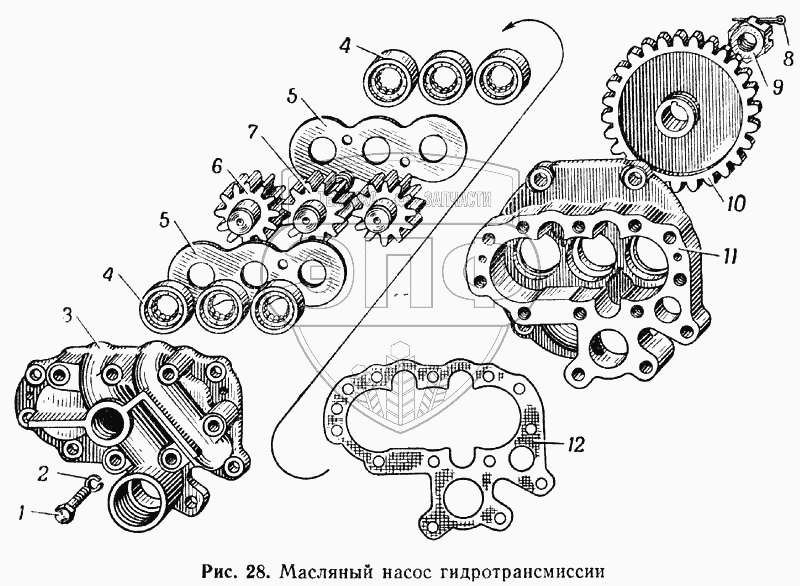 Каталог запасных частей к технике: МАЗ-537. Масляный насос гидротрансмиссии