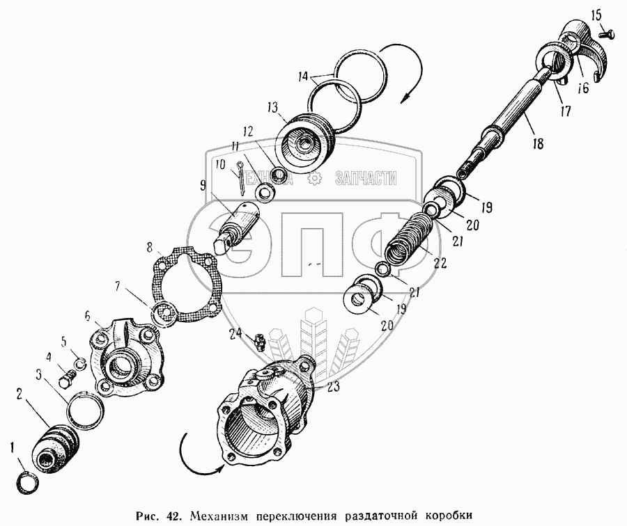 Каталог запасных частей к технике: МАЗ-537. Механизм переключения раздаточной коробки