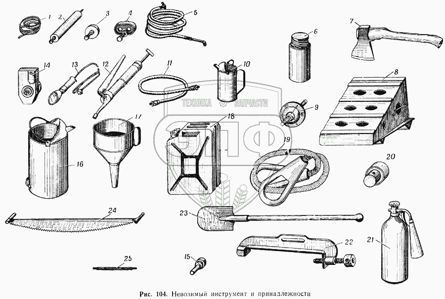 Каталог запасных частей к технике: МАЗ-537. Невозимый инструмент и принадлежности