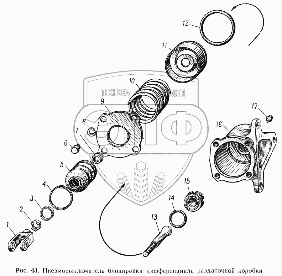 Каталог запасных частей к технике: МАЗ-537. Пневмовыключатель блокировки дифференциала раздаточной коробки