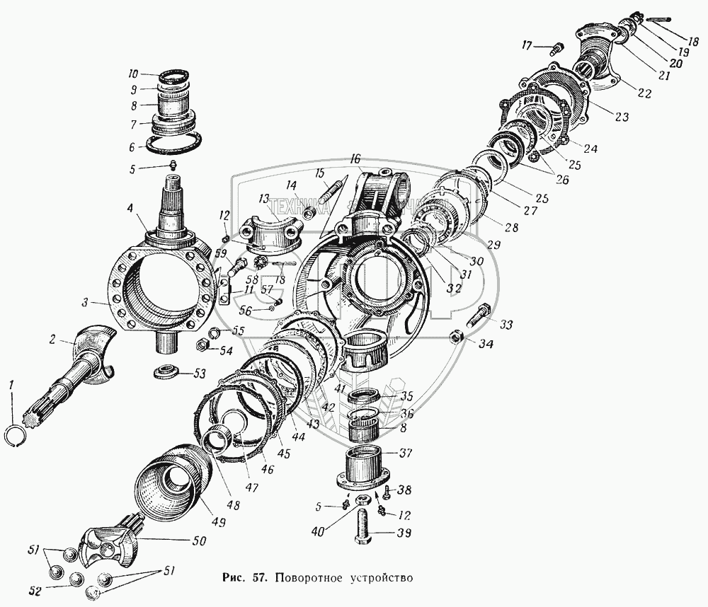 Каталог запасных частей к технике: МАЗ-537. Поворотное устройство