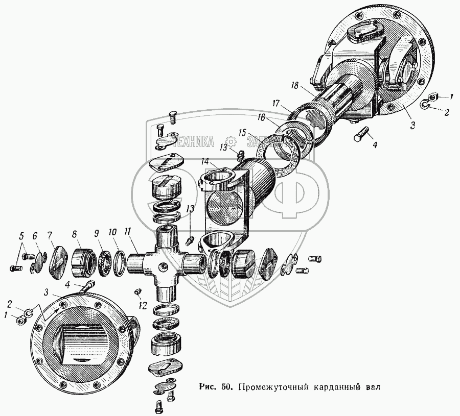 Каталог запасных частей к технике: МАЗ-537. Промежуточный карданный вал