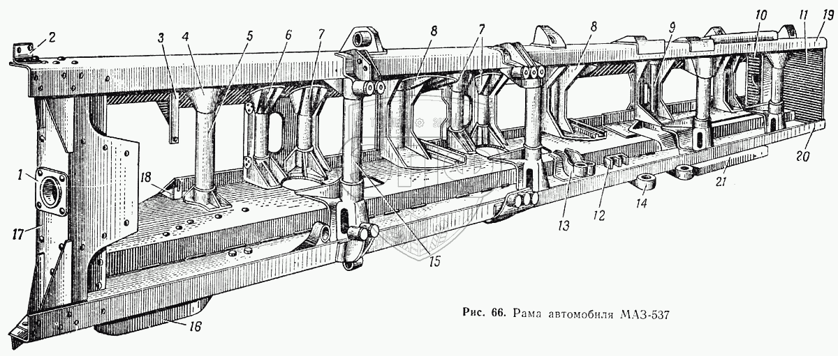 Каталог запасных частей к технике: МАЗ-537. Рама автомобиля МАЗ-537