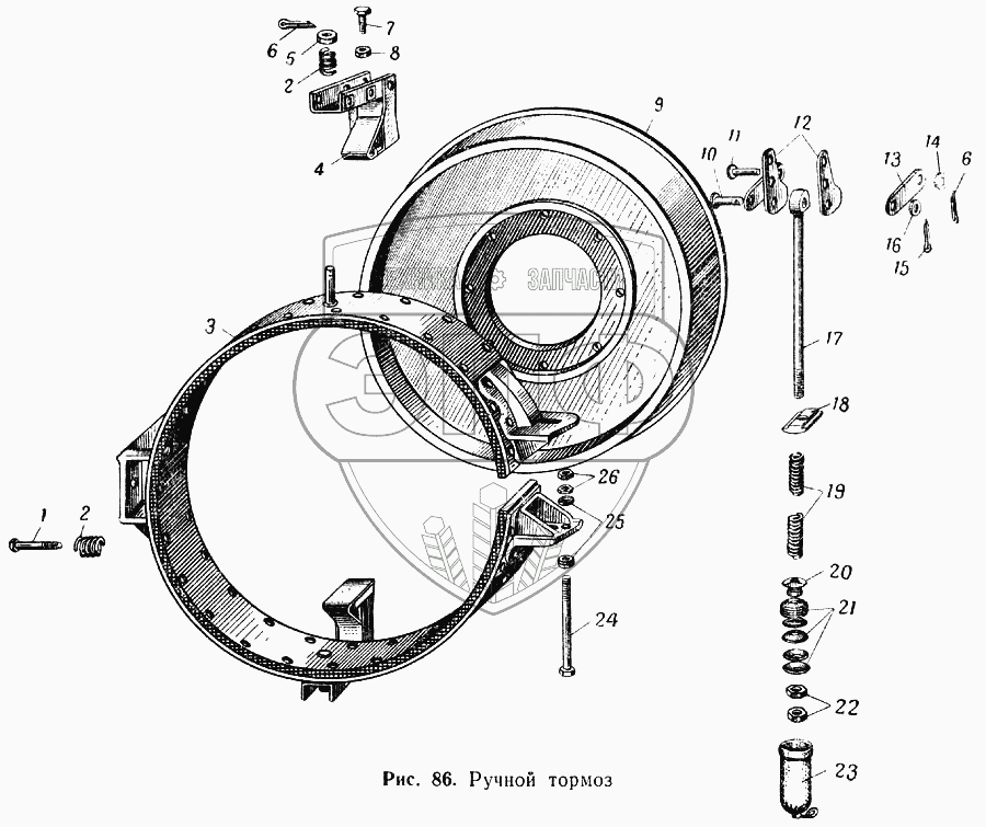 Каталог запасных частей к технике: МАЗ-537. Ручной тормоз