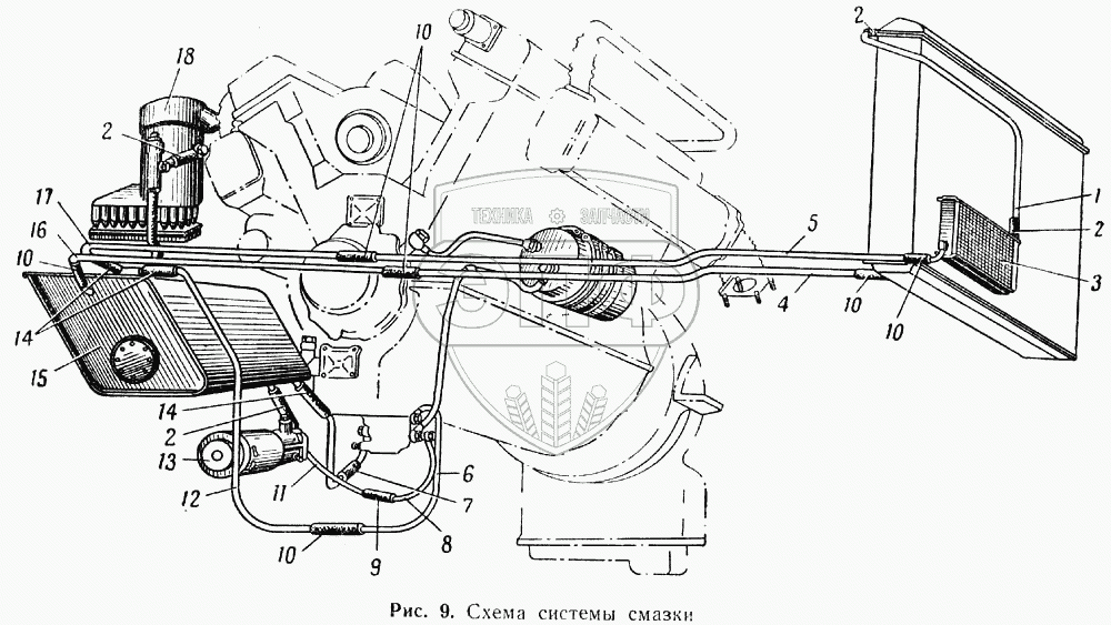 Каталог запасных частей к технике: МАЗ-537. Схема системы смазки